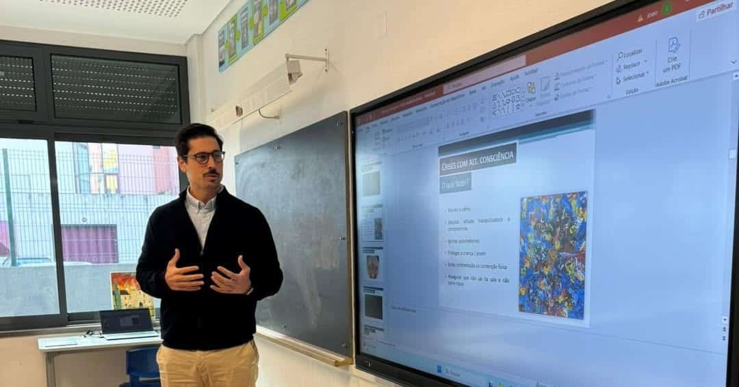 Ainda no âmbito das iniciativas do Dia Internacional da Epilepsia, dois elementos do Serviço de Neurologia da ULS Amadora‑Sintra, a técnica coordenadora do Laboratório de Neurofisiologia, Armanda Santos, e o médico neurologista João Peres, deslocaram‑se ao Jardim‑Escola João de Deus, em Odivelas, para uma ação de sensibilização e educação sobre epilepsia.