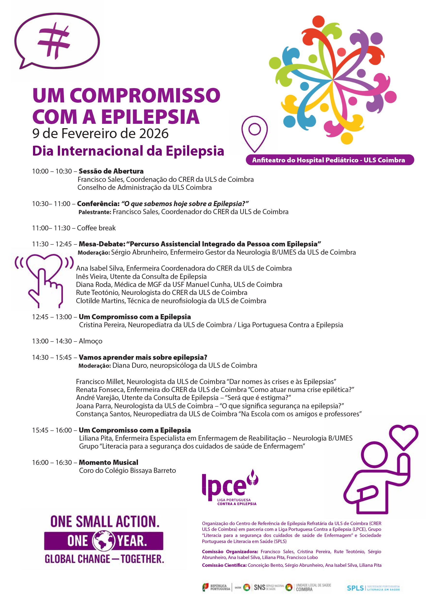 Temos o prazer de vos convidar para a Sessão Comemorativa do Dia Internacional de Epilepsia 2026, que terá lugar no dia 9 de fevereiro, no Anfiteatro do Hospital Pediátrico — ULS Coimbra.